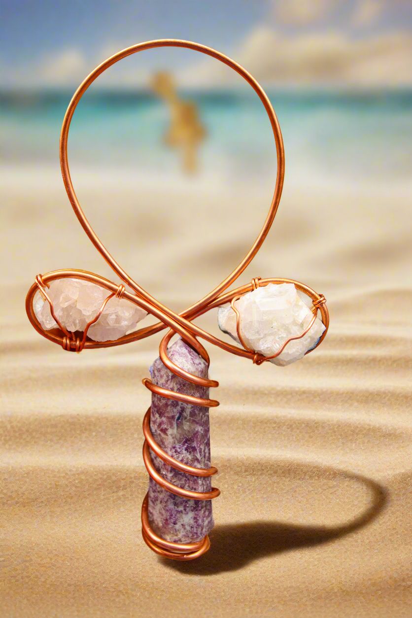 Custom Crystal Ankh tool for meditation, reiki healing, manifestation, and decorative art for a studio. Made to order custom ankh comes with 3 stones, a 4in crystal tower, ×1 amplifier, one generator. This order requires a consultation after purchase.