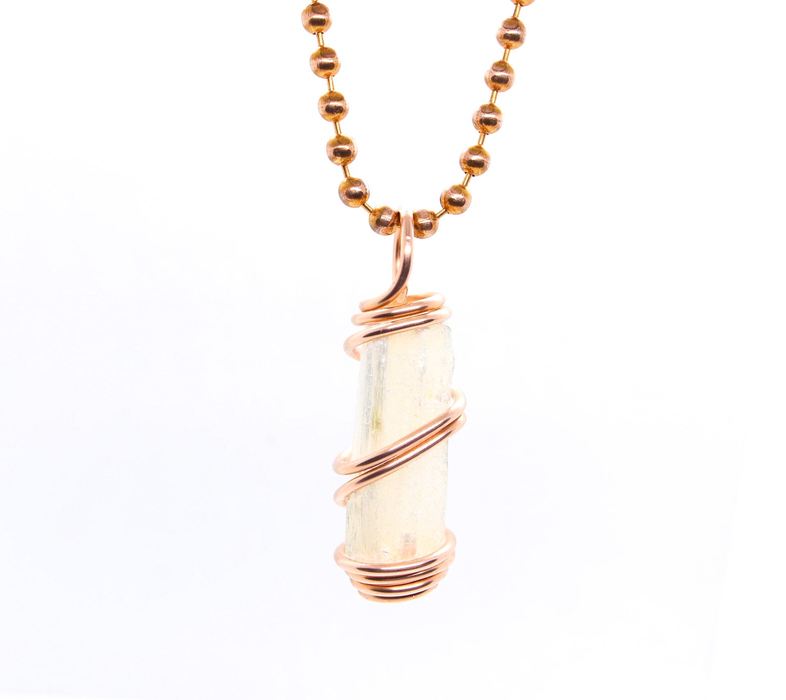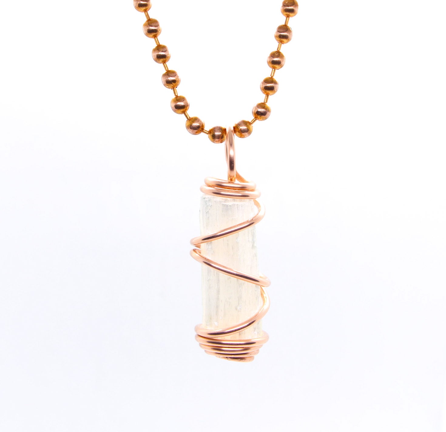 Selenite wrapped in 99.9% 10 gauge copper on 24in 6.3mm copper chain (3 inches).